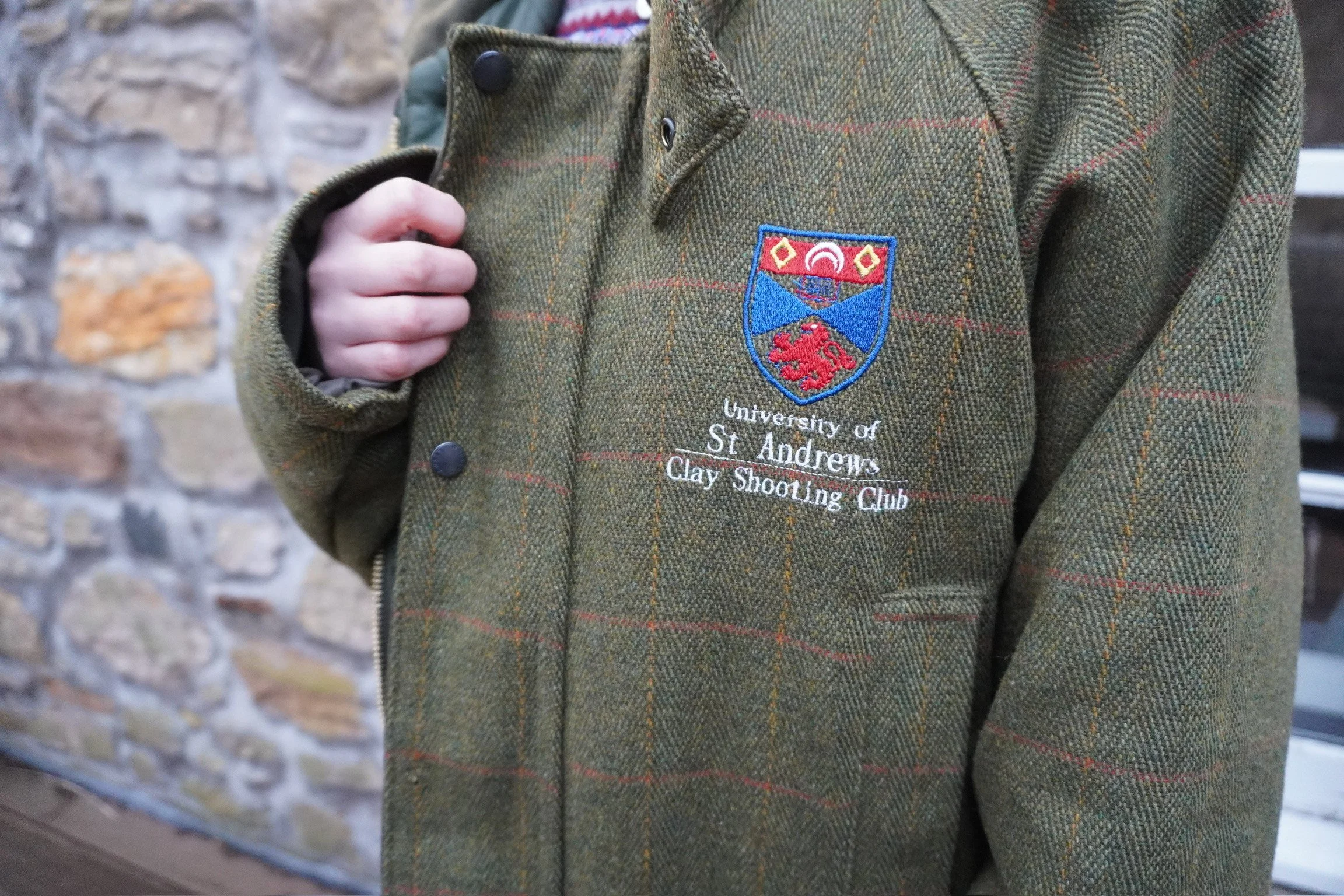 Providing a bit of a different approach to the puffer jacket, sports clubs are not out of the equation when it comes to representing on a puffer. Having the St. Andrew’s logo and committee position on the front provides a similar yet different approach to other society puffers, such as Lumsden’s. You can’t miss a Clay Pigeon or Polo member when they’re sporting their jackets on the streets – the tweed, whether oversized or fitted, is a staple of these club members.