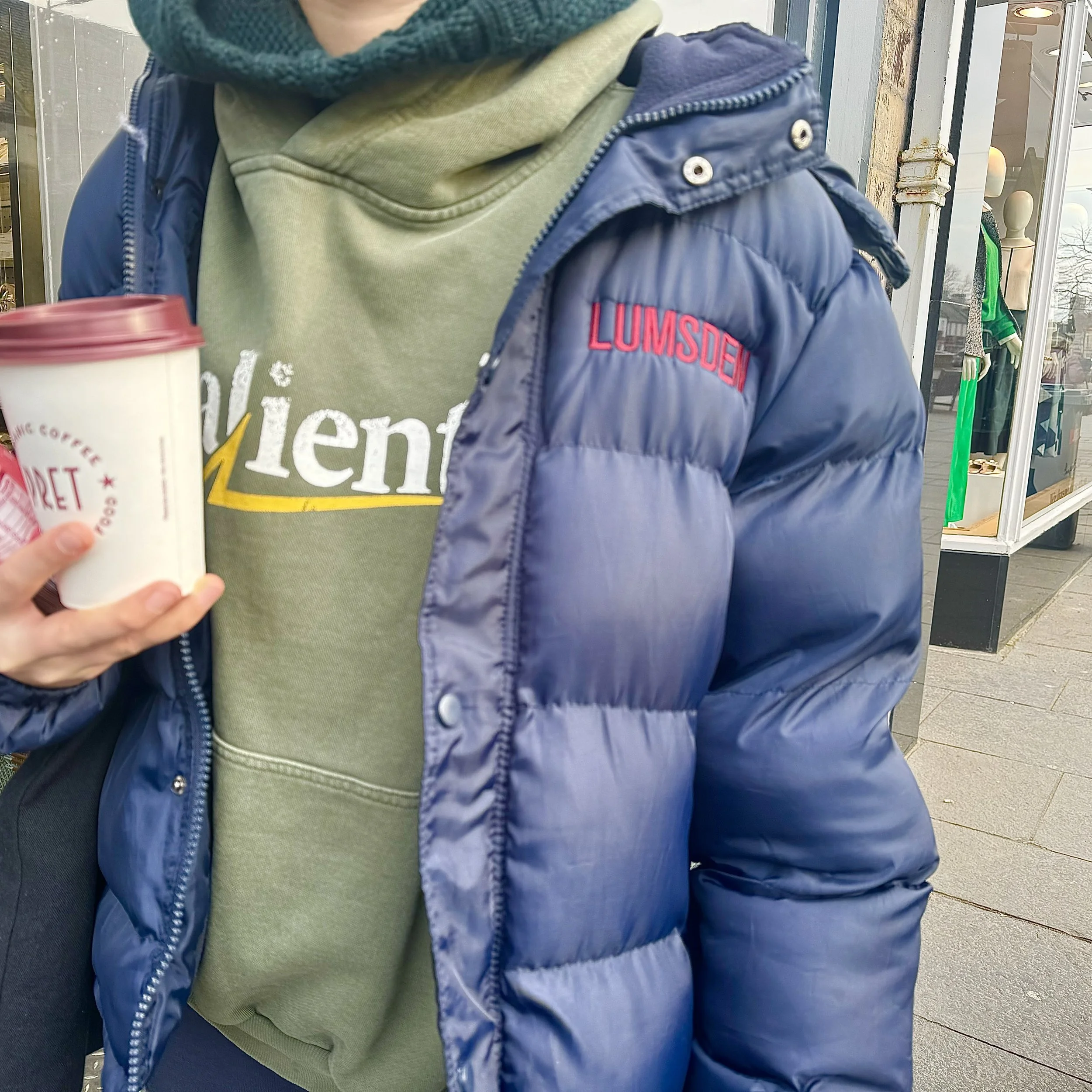 With some societies having their logos on the back of their puffers as well as on the front, this version of the Lumsden puffer opted out of having one on the back. Providing a more subtle and subdued approach to the society puffer is representative of the energy of the Lumsden Club. Even though one may see more society puffers at coffee shops such as Taste or Spoiled, spotting this puffer at Pret is a homage to the popularity of these jackets around St. Andrews – you are bound to see at least one when you step into town.