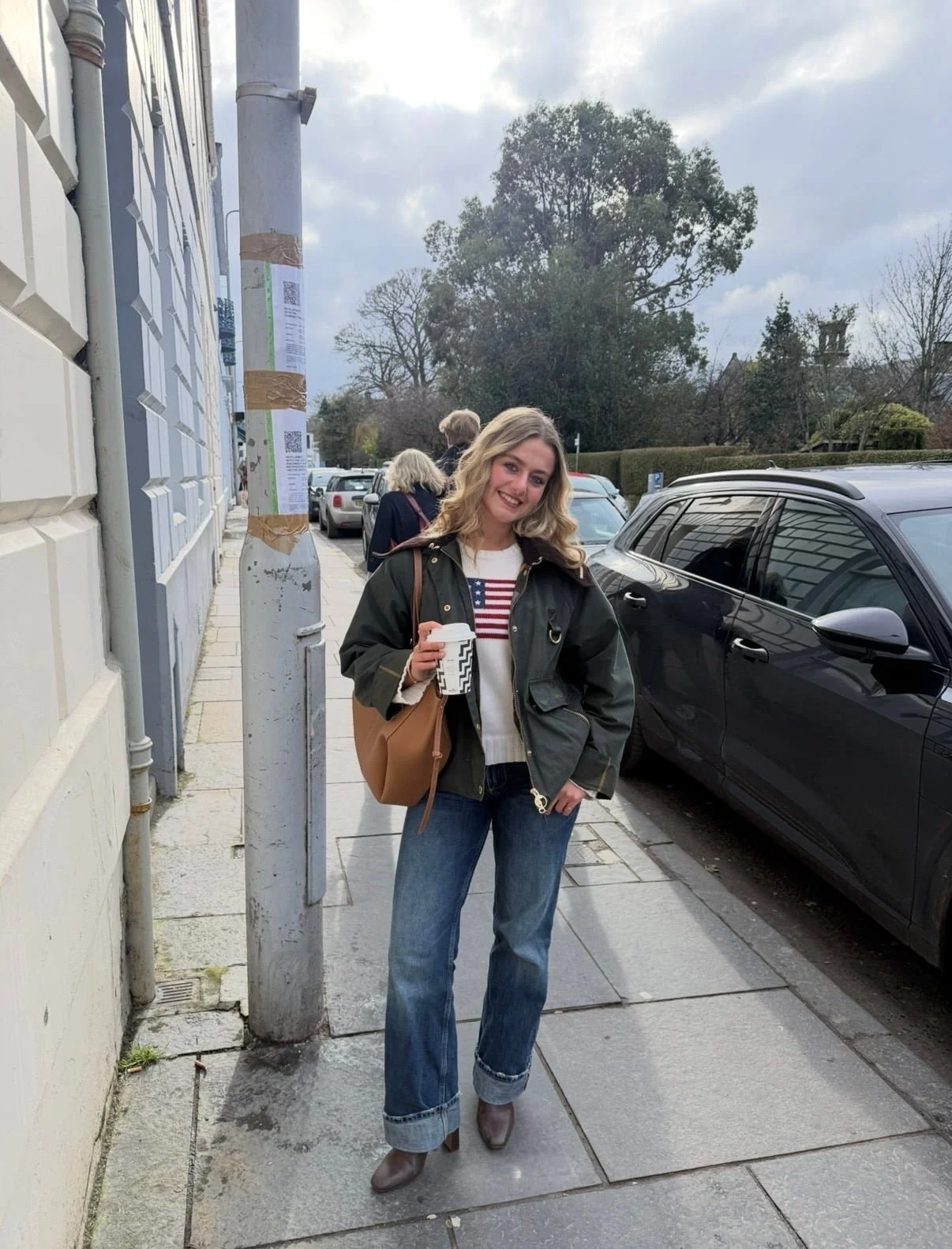 Outfit Details: Barbour jacket, Ralph Lauren sweater, Zara jeans, Steve Madden boots, Polène bag
